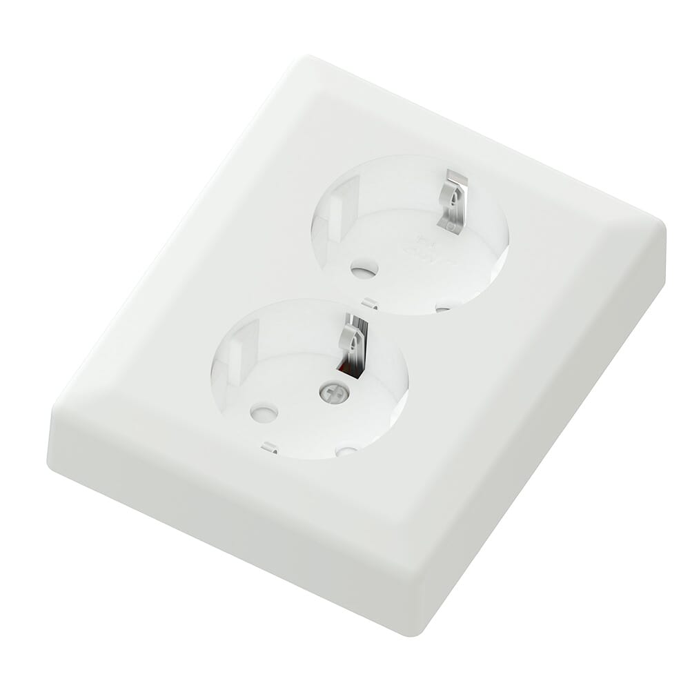 Lavtbyggende innfelt polarhvit dobbel stikkontakt 16A m/ jord og barnevern.