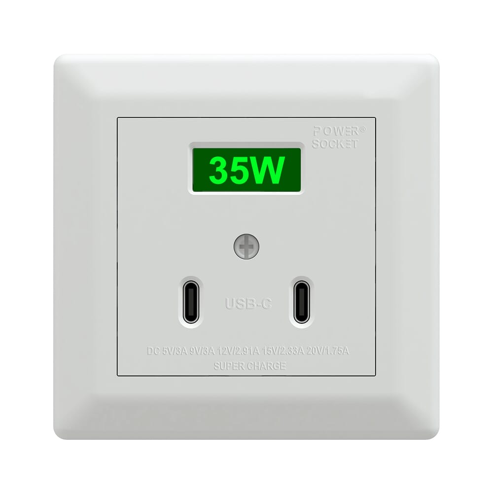 Temolink Powersocket tilkobles nettspenning (230V) og har 35W total ladeeffekt.