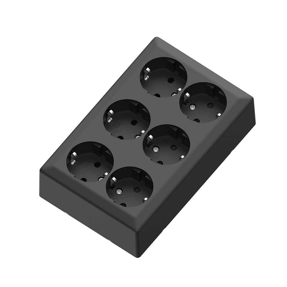 Temo Euro Classic 6-veis stikkontakt påvegg sort 16A/J