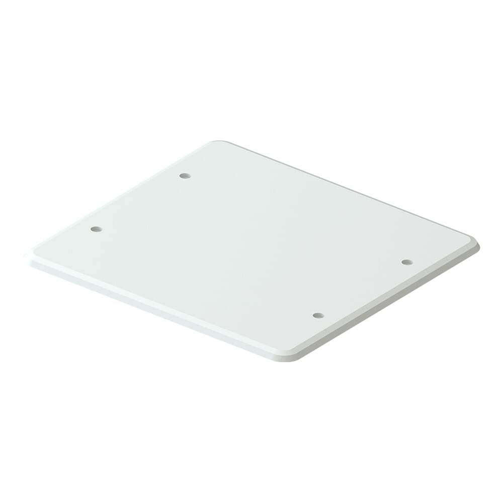 Hvitt, firkantet dekk-lokk. Mål: 161 mm x 161 mm.
