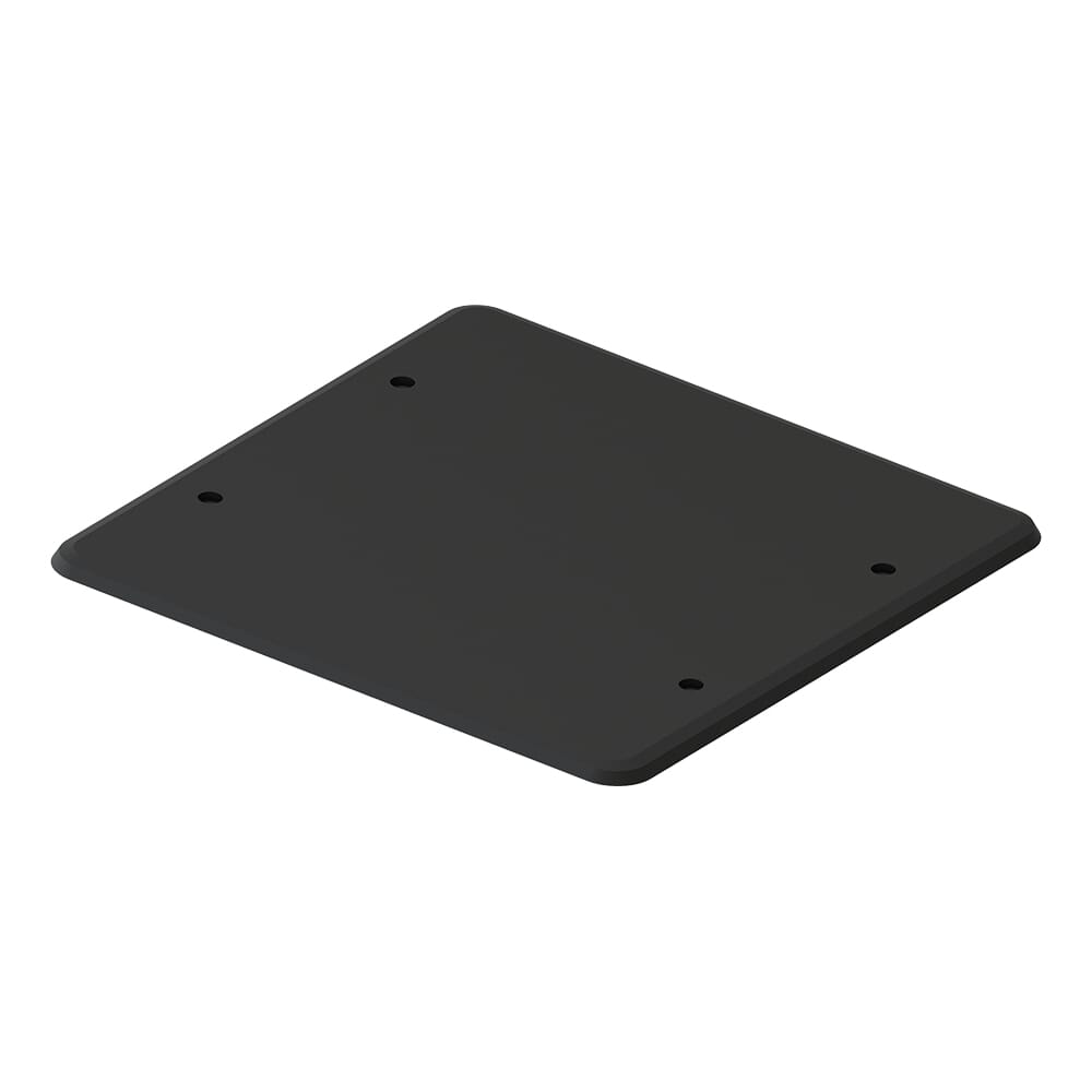 Sort, firkantet dekk-lokk. Mål: 161 mm x 161 mm.
