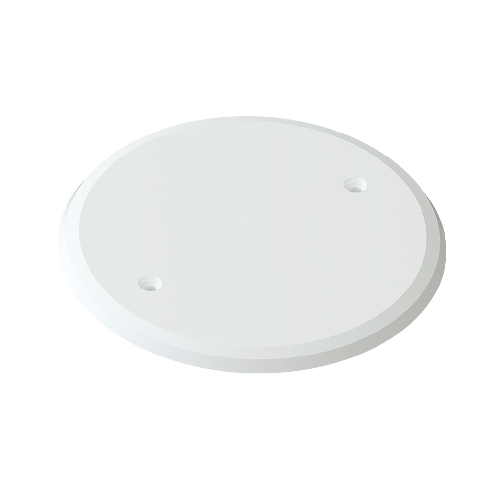 Temo vegglokk enkel er et hvitt, rundt vegglokk i 90x90mm størrelse. Materialet består av et lavhalogen kunststoff, som er flammehemmende og selvslukkende. Fås også i sort.